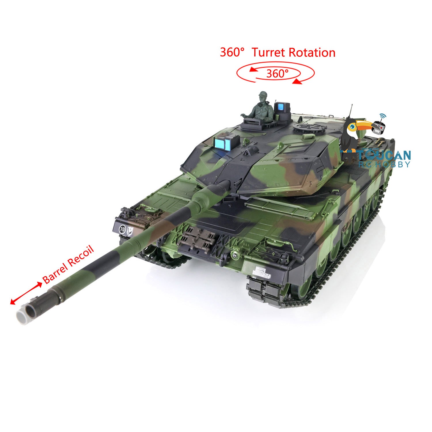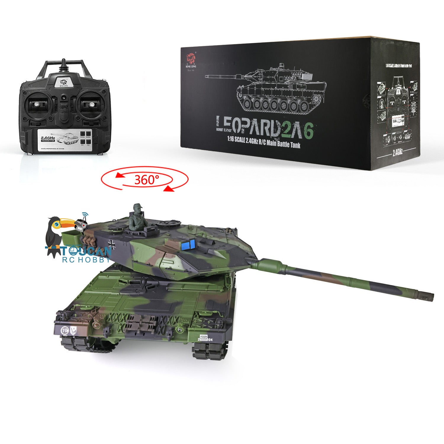 Henglong 1/16 Scale TK7.0 Plastic Leopard2A6 Remote Controlled Ready To Run Tank 3889 W/ 360 Turret Barrel Recoil Smoke Sound