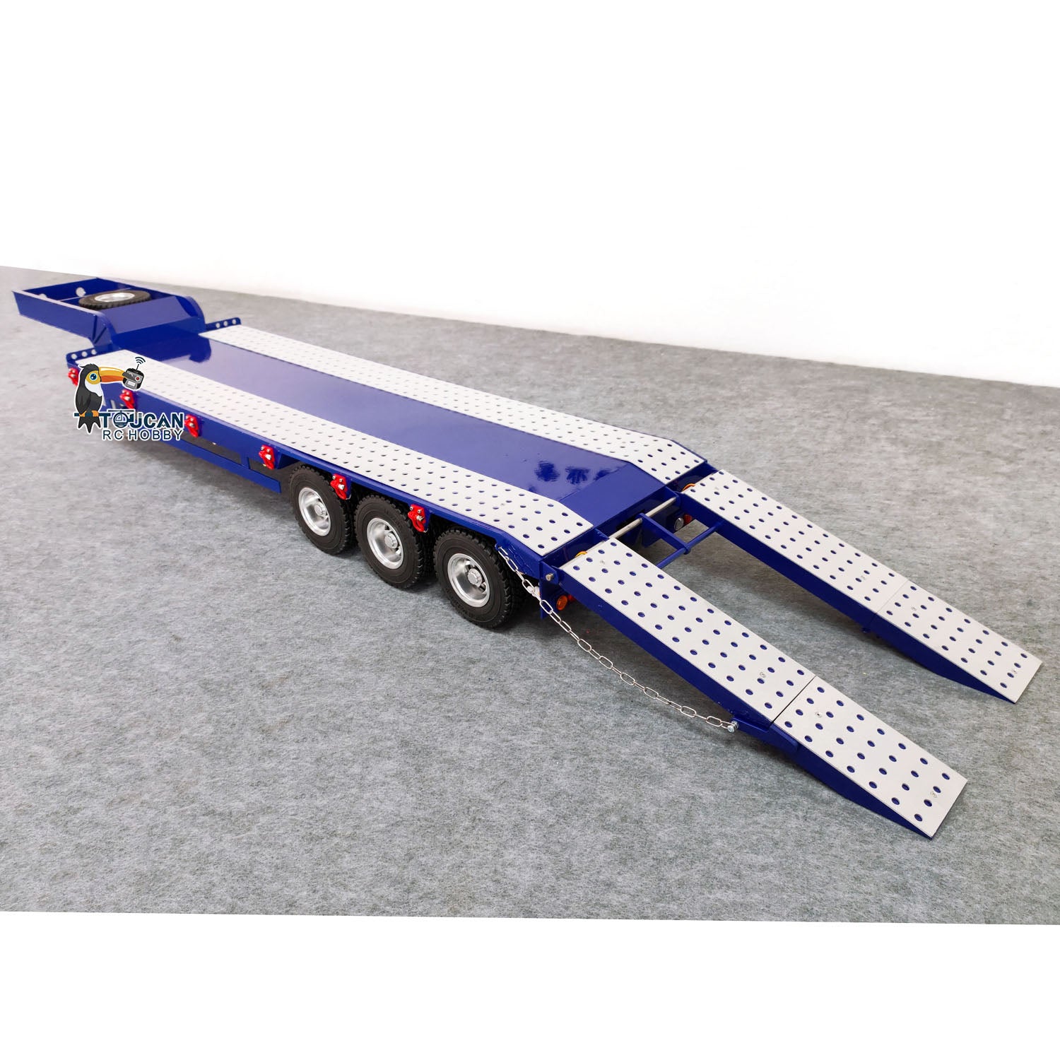 1/14 3 Axles Metal Trailer 2-section Electric Tailboard for RC Tractor Radio Controlled Truck Electric Car Painted