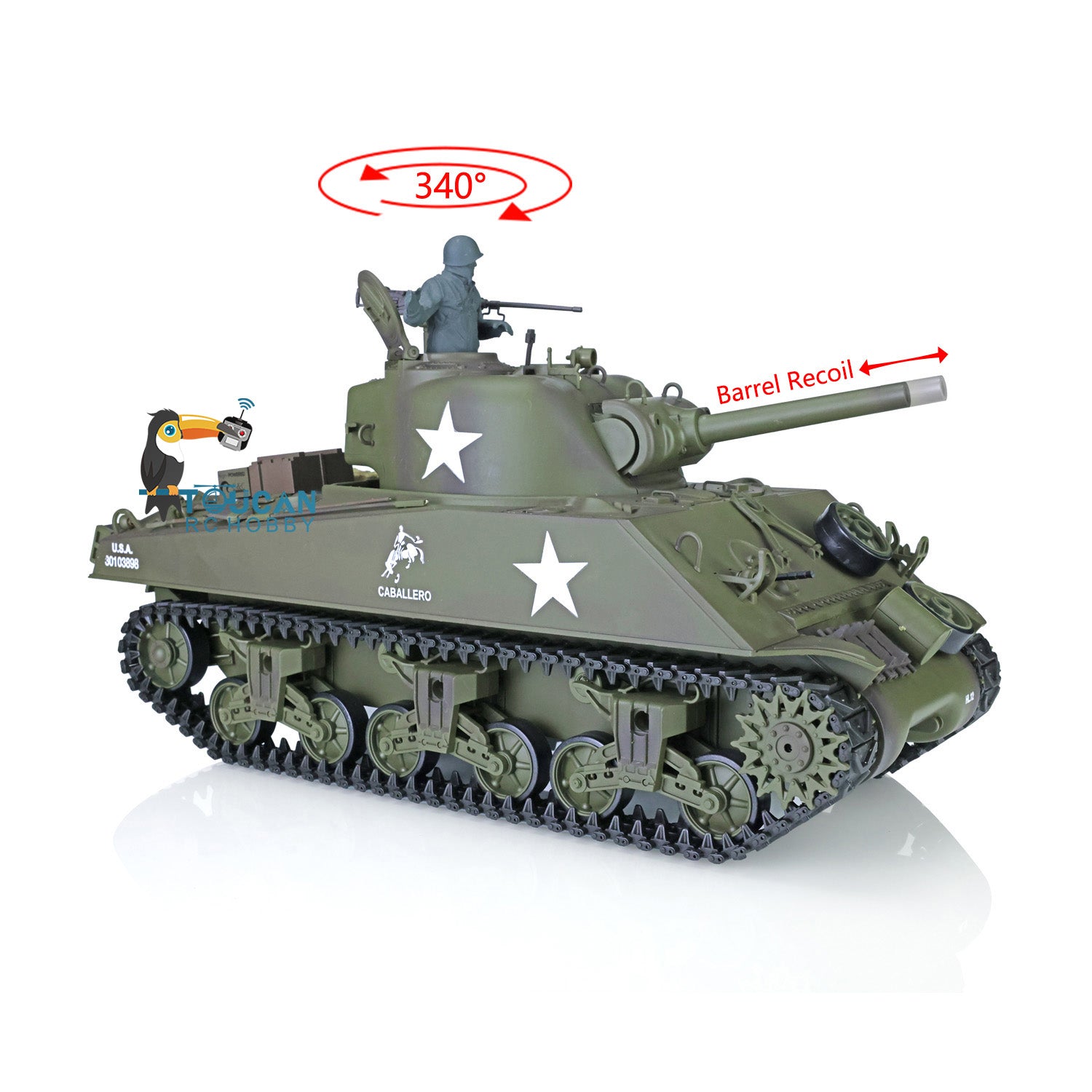 2,4G Henglong 1/16 Maßstab TK7.0 M4A3 Sherman RTR RC BB IR Tank 3898 Barrel Rückstoß Kunststoffketten Kettenräder Leiträder Rauch Sound
