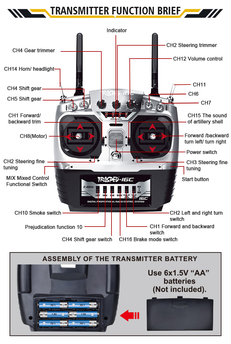 Empfohlener Akku: 7,4 V 3000 mAh/4500 mAh Li-Po-Akku (Nicht im Lieferumfang enthalten)