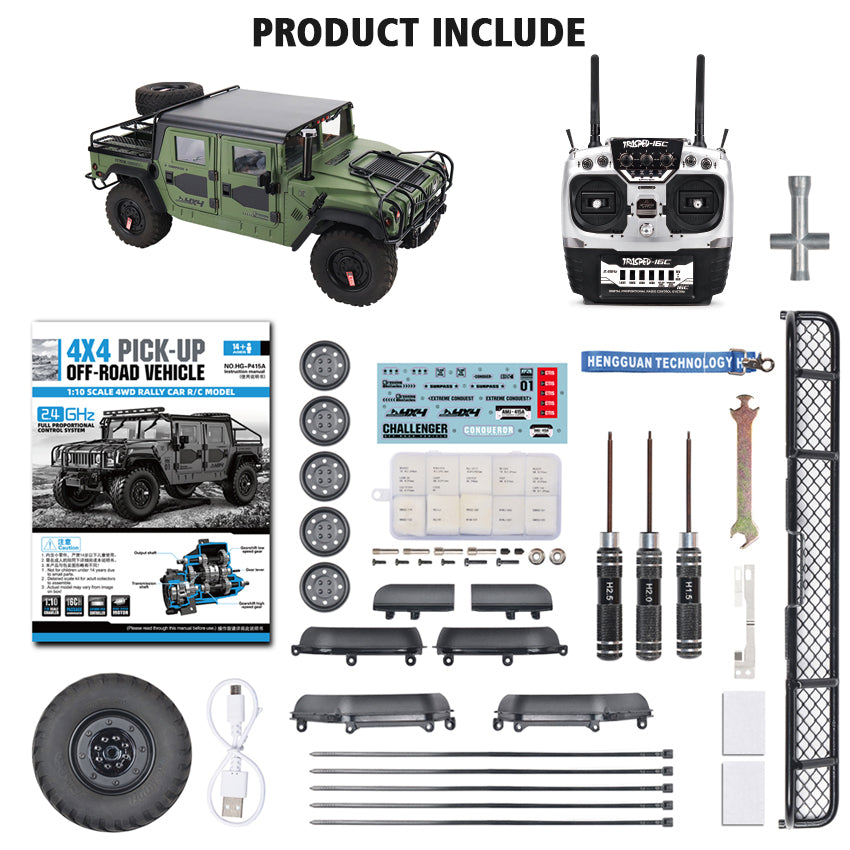HG Lackiertes P415A 1/10 4X4 RC Geländewagen für Pick-up Funkfernsteuerung Crawler Autos Klettern Hobbymodelle