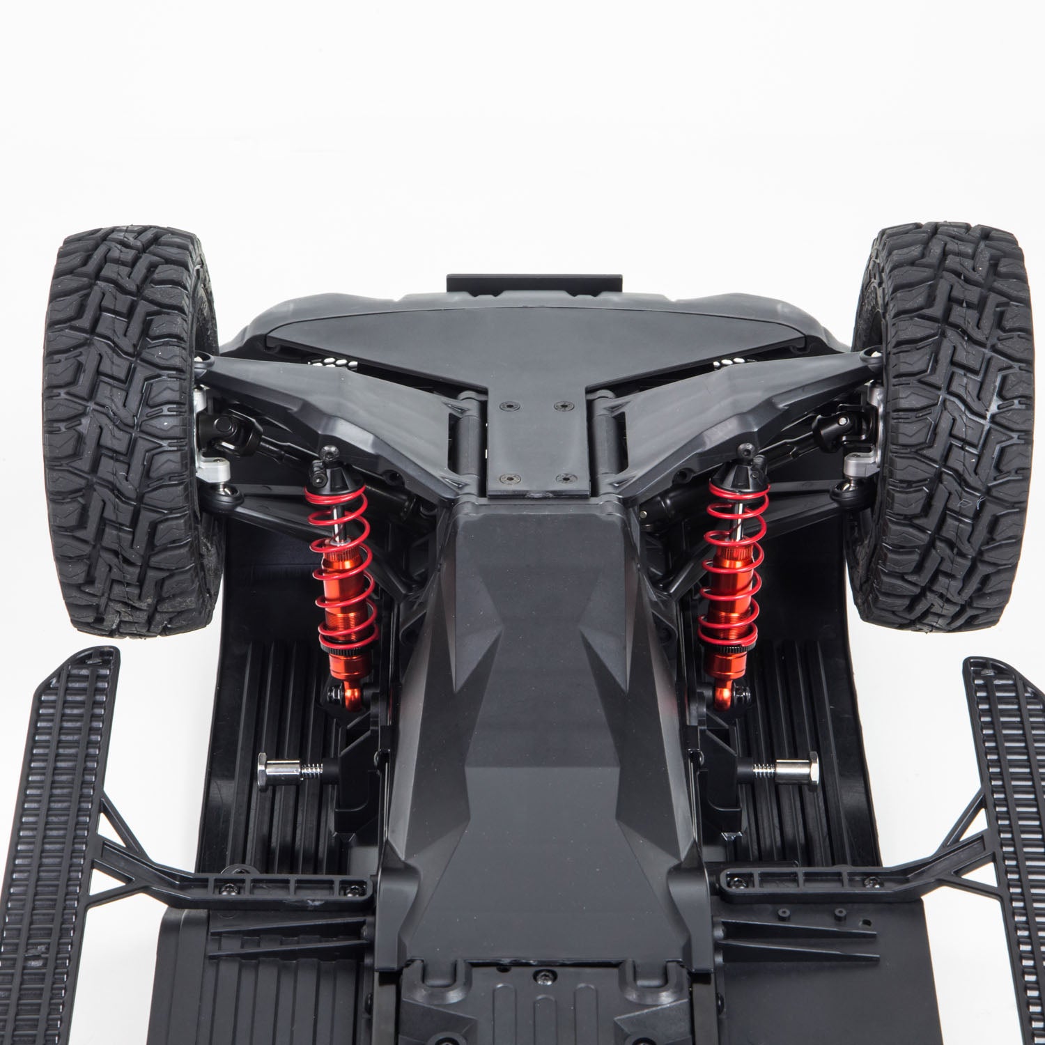 2. The 1.5mm steel frame and 7mm all-metal drive shaft deliver realistic durability, withstand rough off-road use, and are built to last. The front independent and rear solid axle setup with all-metal coilover shocks replicates true vehicle structure.