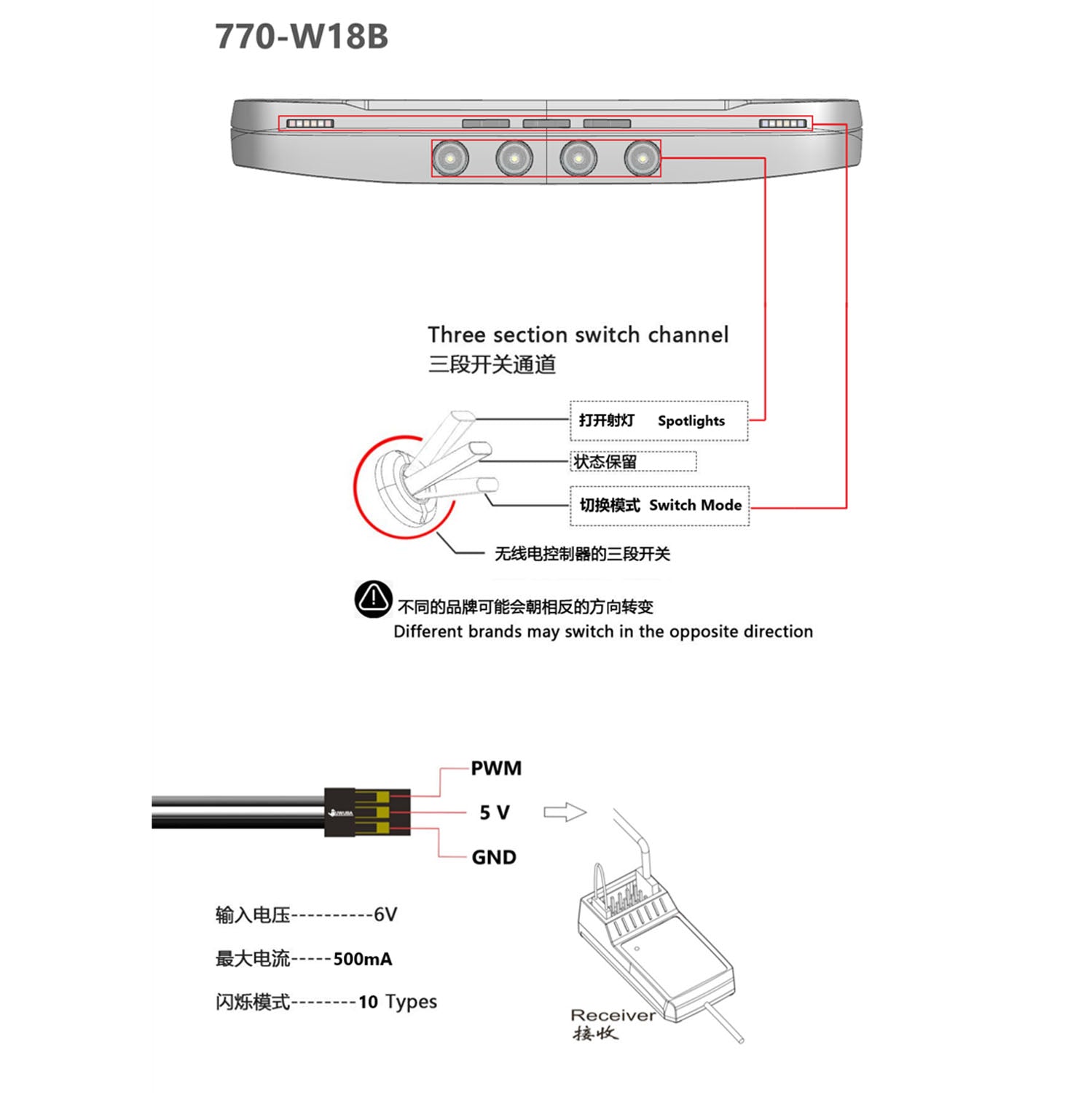 1.This LED's lighting mode switching can be controlled by plugging in the receiver directly.