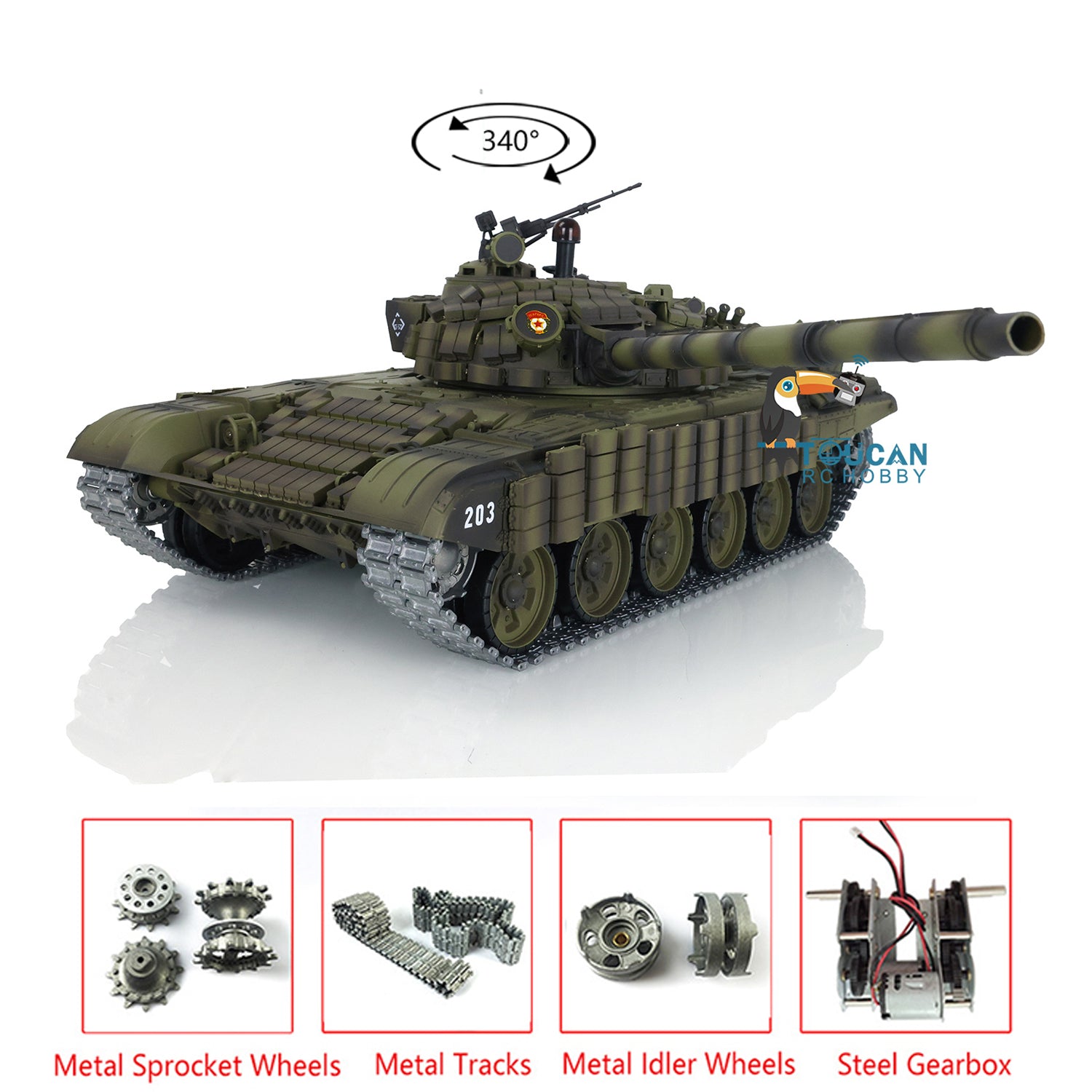 2.4Ghz Henglong Remote Controlld Ready To Run 1/16 Scale TK7.0 BB IR T72 Tank 3939 Metal Tracks Sprockets Idlers Smoke Sound