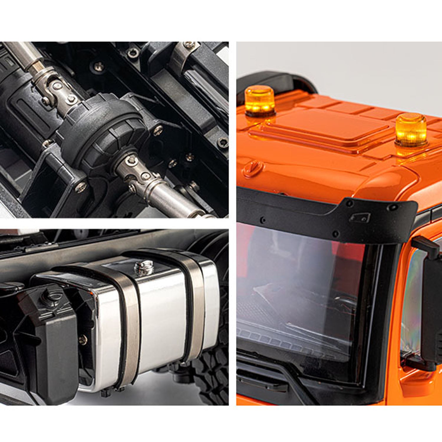 2, It is equipped with three power axles, a metal differential, and a transmission shaft imitating that of a real car, connected by bearings, which provides better off - road load capacity.