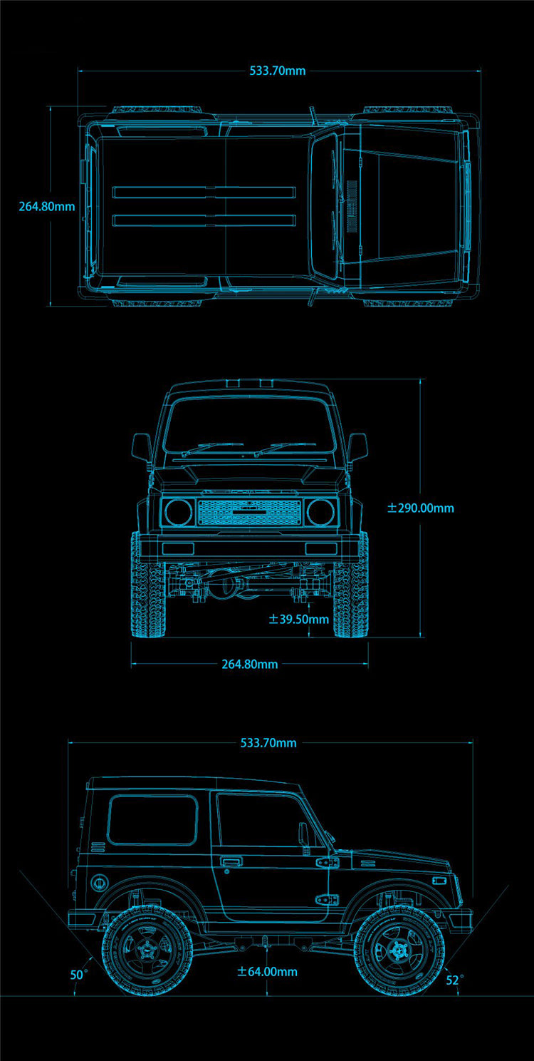 3, The body is divided into different sections. Hood and tail gate with hinges can be operated, they both equipped with mechanical lock, windows can be rolled up and down manually. All those features increase the playability.
