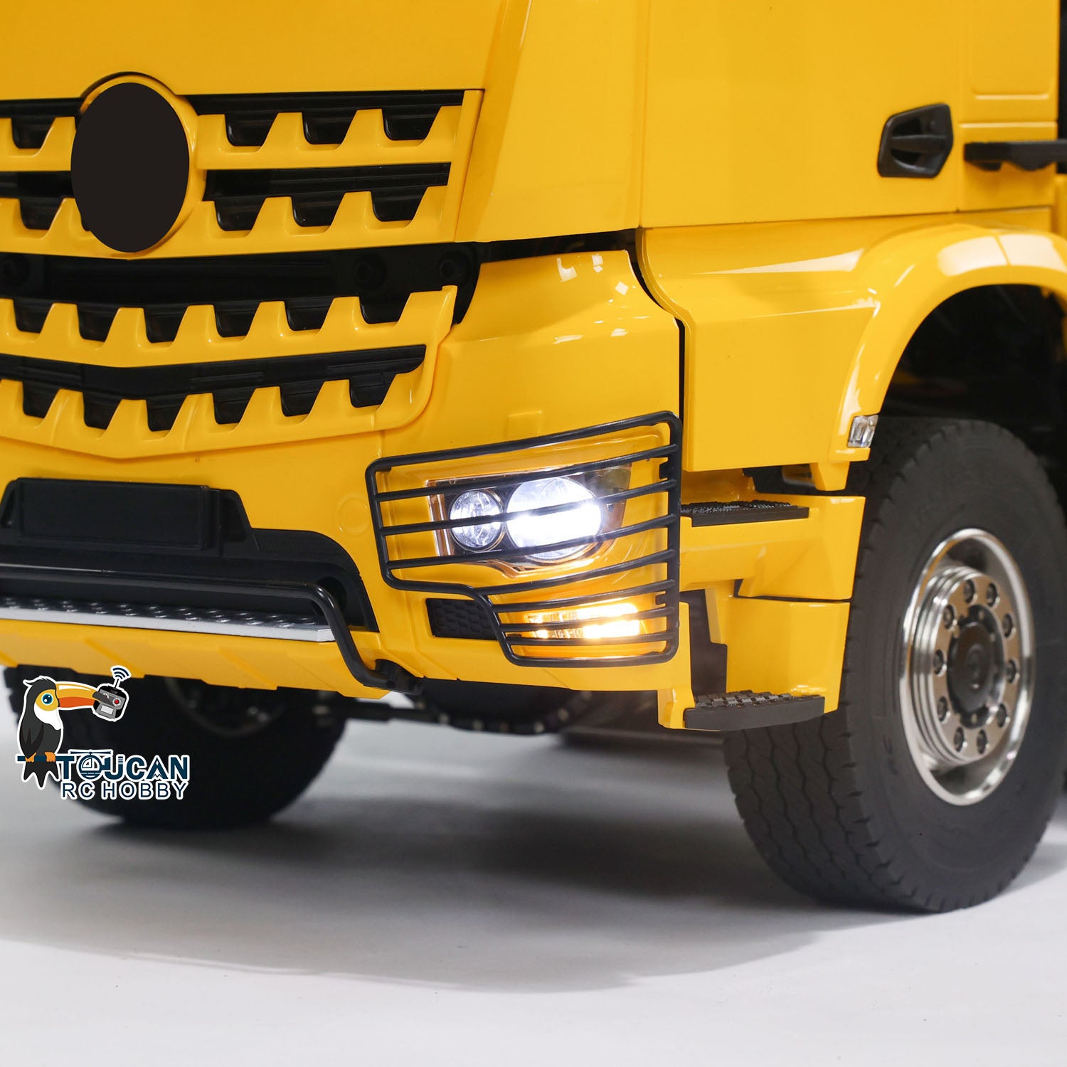 14. Headlights, roof illumination lights, and side lights are controlled together with the central differential through the same channel. The three rotating lights illuminate when powered, and they cannot be controlled remotely.