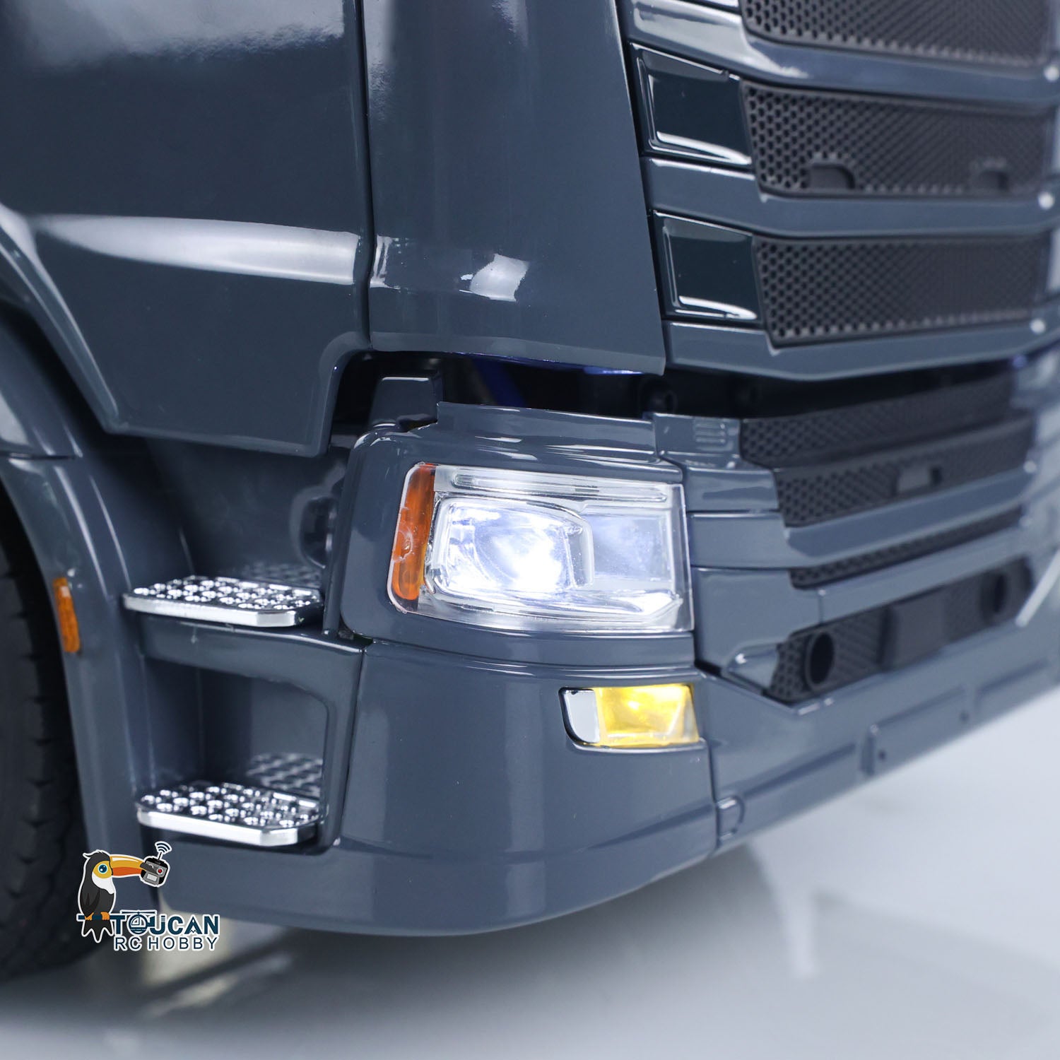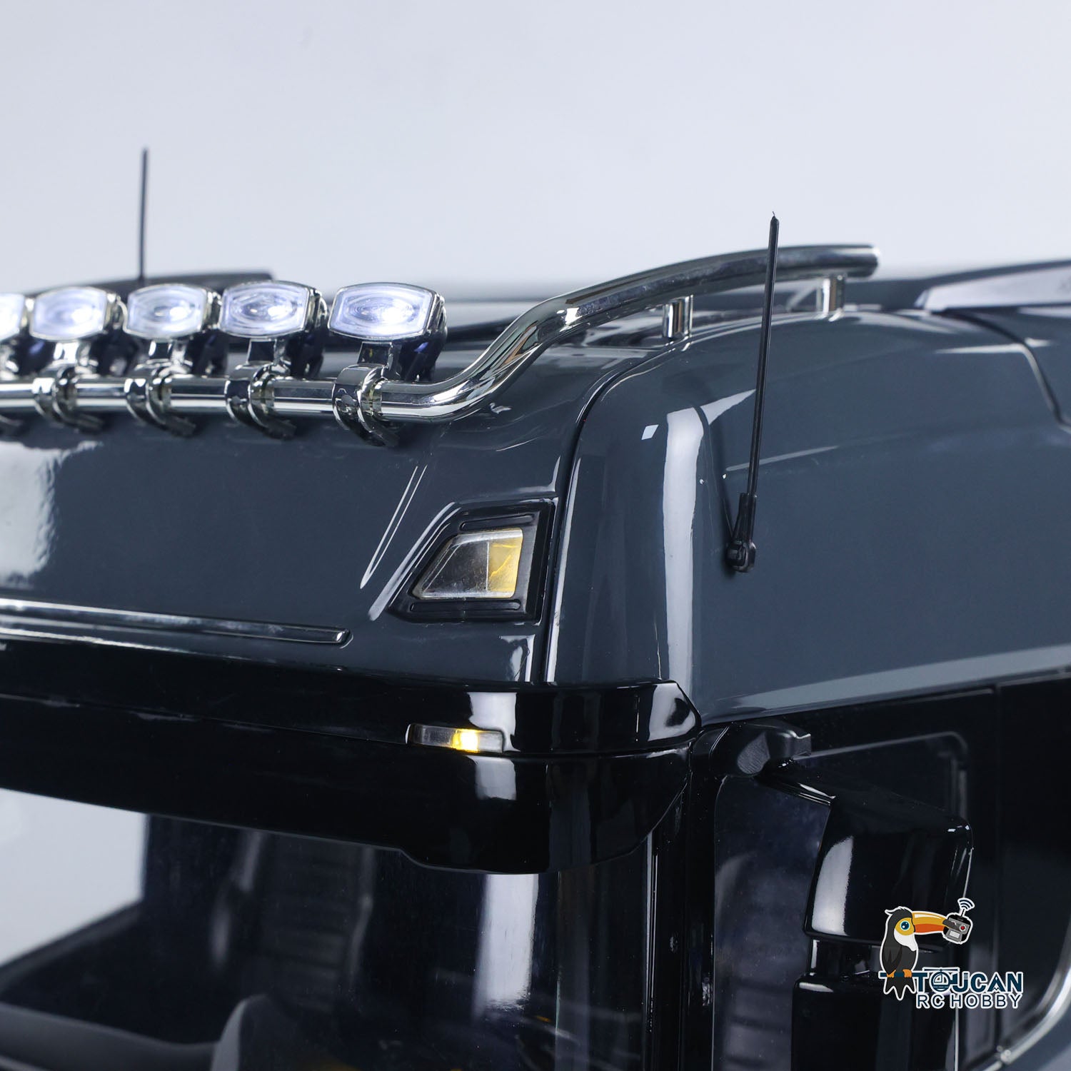 14. Headlights, roof illumination lights, and side lights are controlled together with the central differential through the same channel. The rotating light illuminates when powered, and it cannot be controlled remotely.